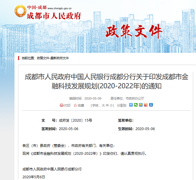 全国首个!成都市政府携手人行出台金融科技发展三年规划